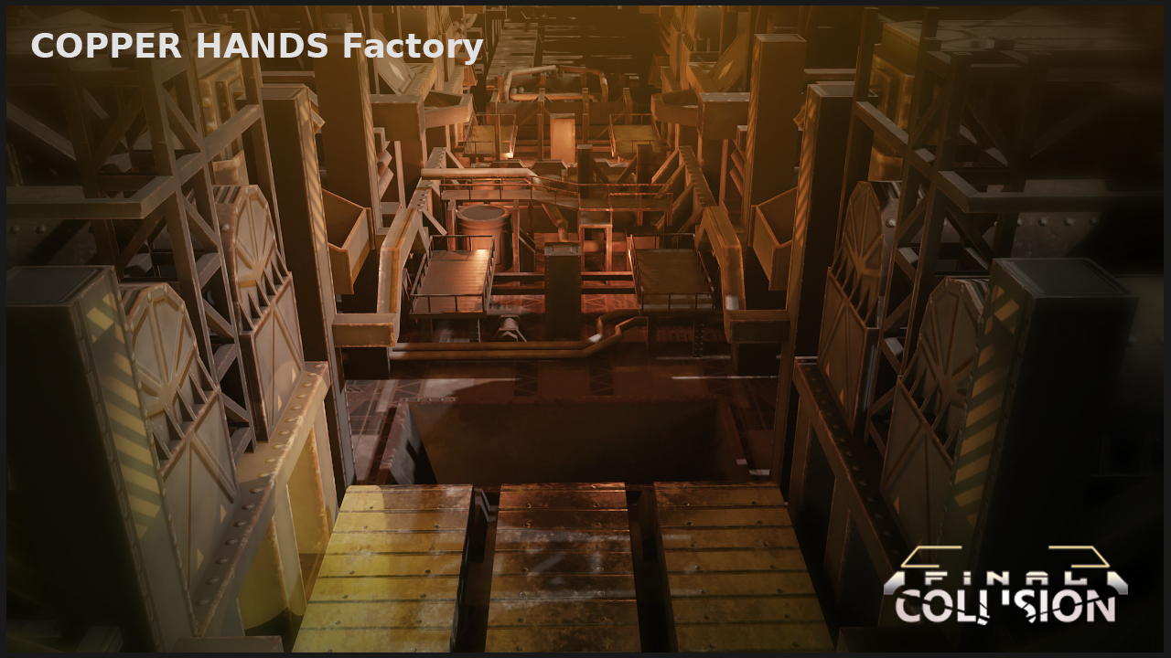 The factories stretch perpendicular to the coastline, like arms reaching out to greet incoming ships. The factories are packed with new solutions in the field of copper processing and mining, robotic units are implemented in all aspects of production, protecting workers from dangerous and difficult work. This year, the cycle of modernization of molding robots was completed and both factories are fully equipped with large teams of autonomous machines working 24 hours a day - All necessary elements have been added to the level and it is waiting for balancing.